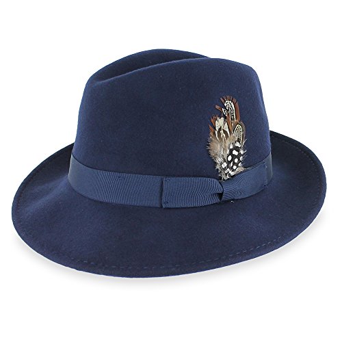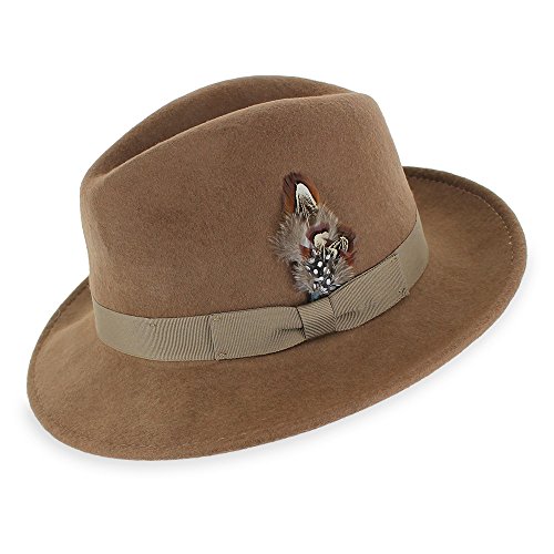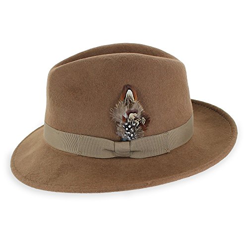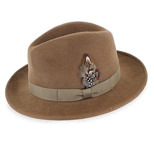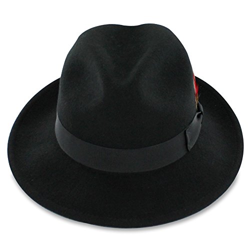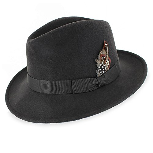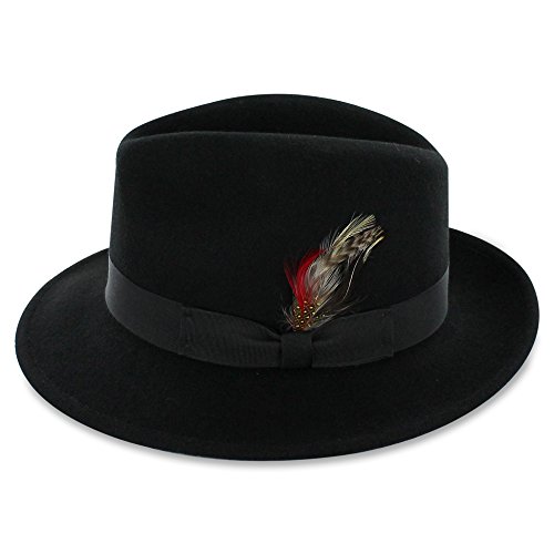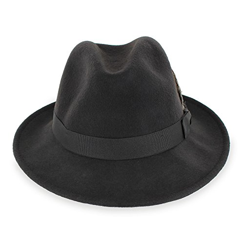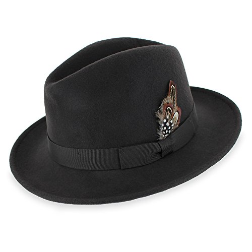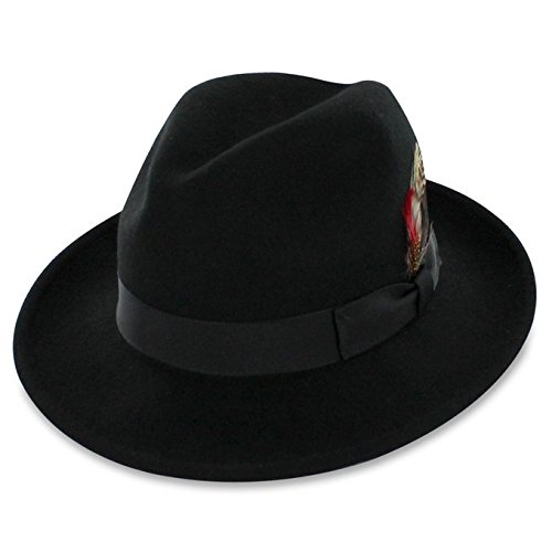 Binding : Apparel Product Description Step out on the town in the 1920s-inspired Belfry Bogart. This is a traditional yet contemporary men's fedora that has all the features of the most popular hat style in the world. The 2 3/8-inch brim, 4-inch crown and feather embellishment make this fedora reminiscent of all the most notorious gangsters, Capone included. Its 100 percent wool body and water- and stain-resistant treatment make it excellent for cold- and inclement-weather wear. Although this hat is all old-school, it still plays to a modern sensibility with its completely crushable body that's designed for smart travel. The Gangster fedora will bounce back to its original shape - no creases, no wrinkles! - even when you've got it stashed in your luggage during long flights. Plus, it won't suck up valuable suitcase space. Pack the Bogart black fedora for an interview or a fancy occasion or choose the sleek gray style for less formal events. Specifications: 100 percent wool body Traditional fedora silhouette 2 3/8" brim 4" C-Crown Crushable and packable Resistant to water and stains Feather style and color may vary 0