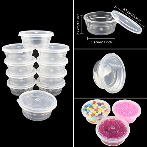 Glitter Slime/Fruit Slime/Storage Containers - Mixing these colorful and eye appealing fruit slices or glitter sequins in your crystal clear slime gives your slime a festive party feel. You can watch videos on youtube to learn how to make these slimes. |The 10pcs clear storage containers for 20g slime are made of fine plastic which are durable, washable and reusable. no leaks or drips, great to store your slime.