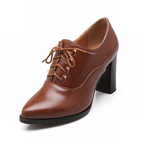 -. Binding : Apparel -. Brand : Carol Shoes -. Color : Brown -. Department : womens -. Feature : PU Leather / Manmade Material / Heel Height: 3" / Pointed Toe / Listing images were taken off actual product, however, actual color may differ slightly due to different monitor display setting. -. PackageQuantity : 1 -. ProductGroup : Shoes -. ProductTypeName : SHOES -. Title : Carol Shoes Retro Women's Lace-up Studded Pointed-toe Chic High Heel Oxfords Shoes