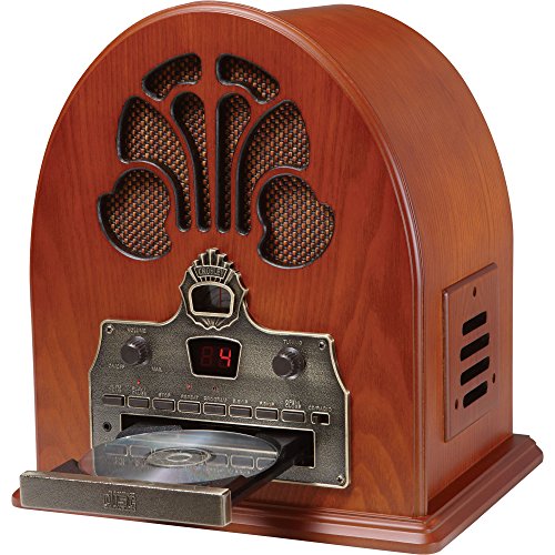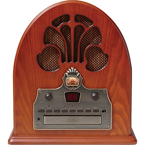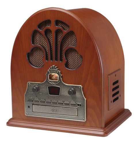 Studio : Deer Park Distributors Publisher : Deer Park Distributors Binding : Electronics Product Description The Cathedral radio, introduced in 1932, is one of the most widely recognized designs of all antique radios. It has quite simply been dubbed the "Cathedral" or is sometimes referred to as the "Gothic." The Crosley CR32CD is a remarkably rich replica, outfitted with an arched veneered top and the applied solid wood moldings are hand-rubbed to perfection using Crosley's same unflinching standards. Its smooth round edges, woven grill cloths, detailed framework and antiqued bronze face plate lend a true air of authenticity to this time honored Crosley. The Cathedral CR32CD features a programmable CD player with LED display. It is so much like the original, but with all the bells and whistles of present-day technology 0