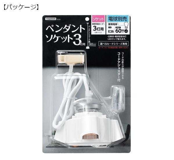 | 仕様 | 口金:E26 灯数:3灯 定格消費電力:60Wまで×3灯 定格電圧:AC100V 定格周波数:50Hz/60Hz ペンダントコード長:約90cm スイッチコード長:約40cm コードアジャスター付 |