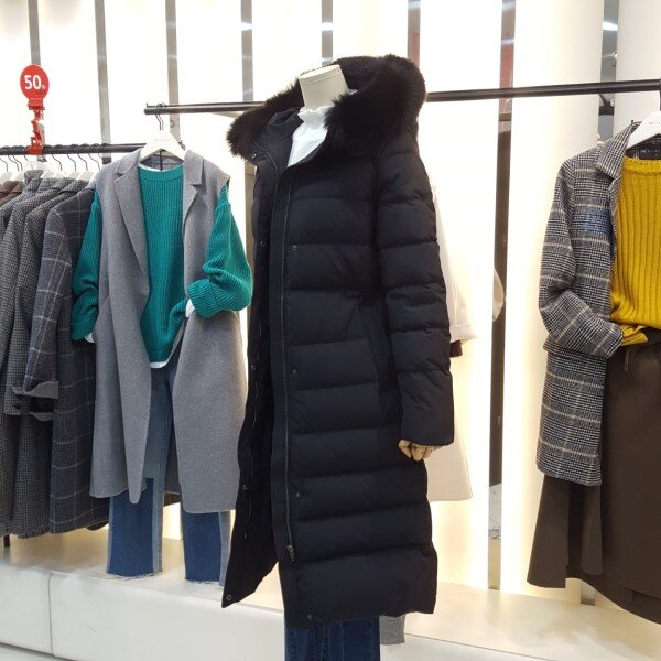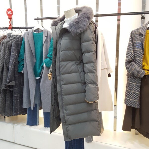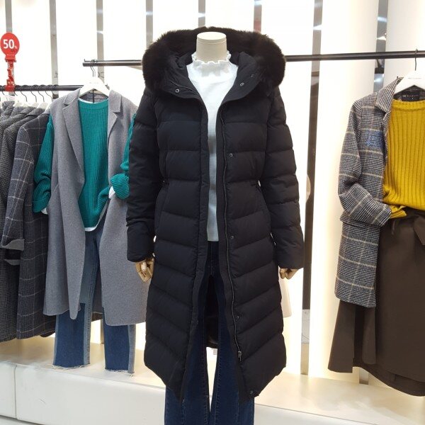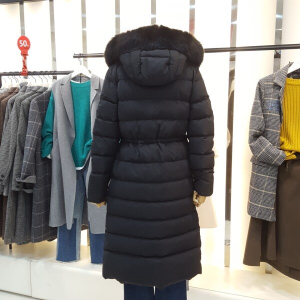 풍성한 폭스퍼 후드가 고급스럽고 덕다운 롱 패딩으로 보온성이 우수하며 허리안 스트링끈조절이 가능하여 허리라인의 슬림하게 연출이가능합니다슬림한 라인으로 여성스러움을 더해줄아이템입니다