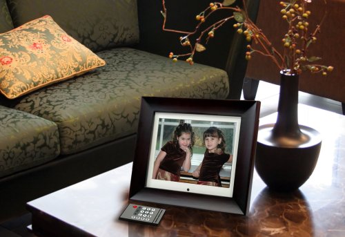 -. Feature : 8.0-inch TFT LCD screen / 800 x 600 pixel resolution with 4:3 aspect ratio / Built-in 128 MB flash memory; supports CF, SD, MMC, MS, and xD memory cards / Delete and rotate; play MP3 music and movie clips; create slideshows / What's in the box: Digital picture frame, AC power adapter, USB cable, leather-look and wood frame, remote control, user manual