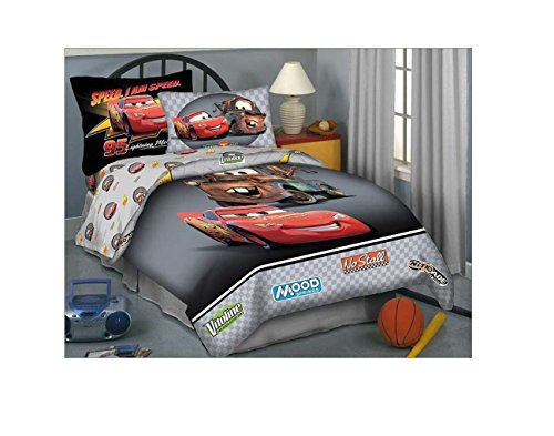 Vroom . This sheet set is perfect for any cars fan. Not only is this set comfortable and cozy but it is also very cool with its vivid colors and printed design. This sheet set would go perfect with cars comforter thus completing the cars themed bedding ensemble.Feature