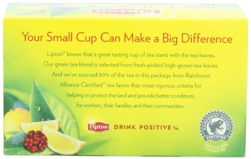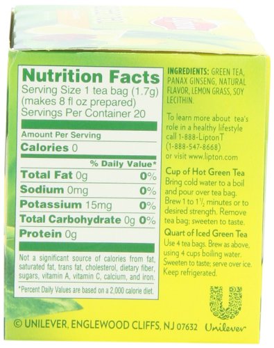 -.Combination of the tangy taste of lemon and ginseng with Lipton's pure green tea.20 count tea bag box