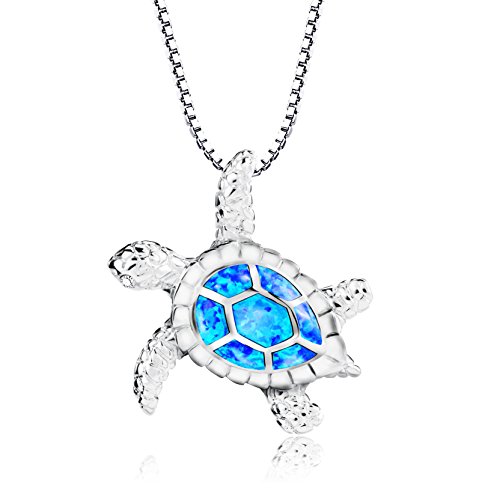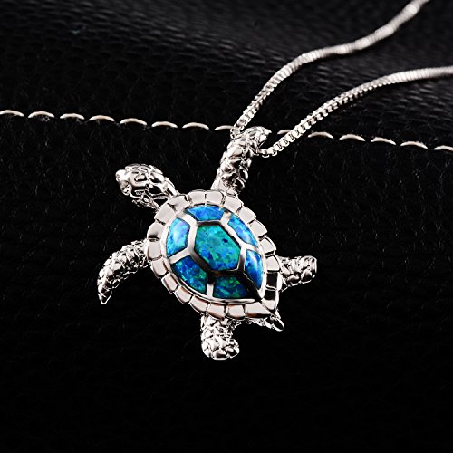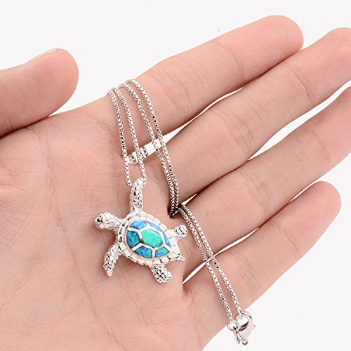 Turtle Necklace, Morenitor Silver Plated Blue Opal Sea Turtle Pendant Necklace Jewelry Gifts for Women Girls, 18 Inch Necklace Chain