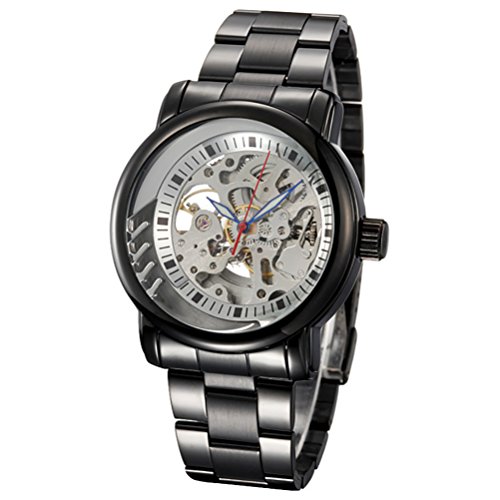 -. Title : GuTe出品 スケルトン ブラックのステンレスバンド より高級よりいい品質 上品 知性的 ファクション オシャレ シルバー 自動巻き メンズ腕時計