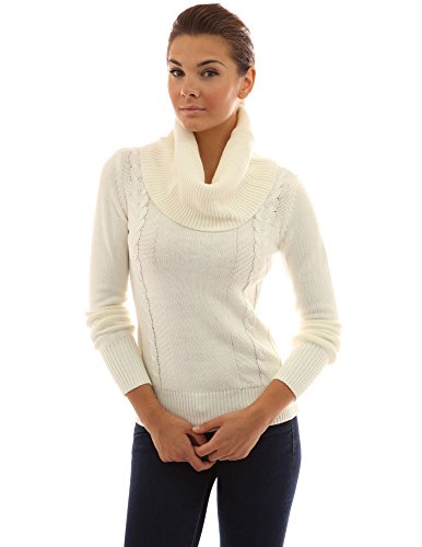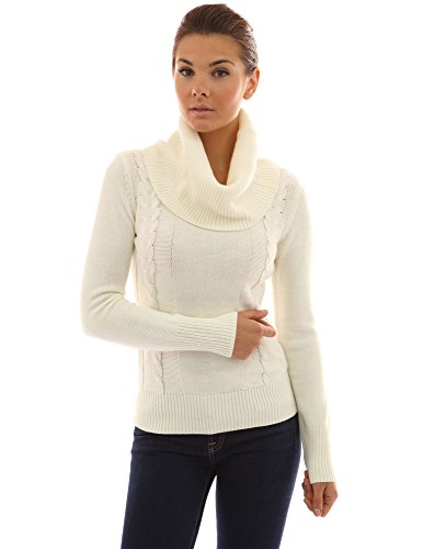 Drape Ribbed Cowl Neck Cable Knit Pullover Long Sleeve Knitwear Jumper. Model in pictures is 5 feet 8 inches (173cm) tall.