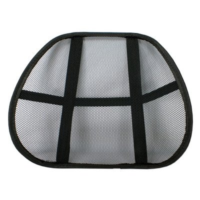 -. Feature : Relieves back stress / Perfect for car, home and office / Attaches to seat with elastic strap / Lightweight but durable steel frame / Made of flexible mesh fabric for constant airflow