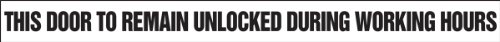 Accuform Signs LADM533VSP Safety Label, Legend "THIS DOOR TO REMAIN UNLOCKED DURING WORKING HOURS", 2" Length x 24" Width x 0.004" Thickness, Adhesive Vinyl, Black on White (Pack of 5)