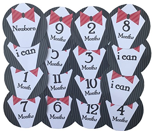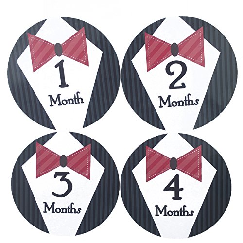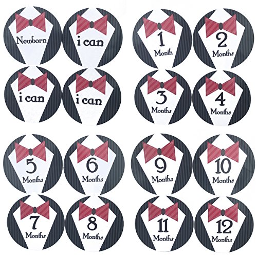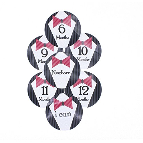 16 PCS Baby Boys Monthly Belly Sticker Necktie Tie Milestone Onesie Stickers First Holiday Shower Gift Or Scrapbook Photo Keepsake