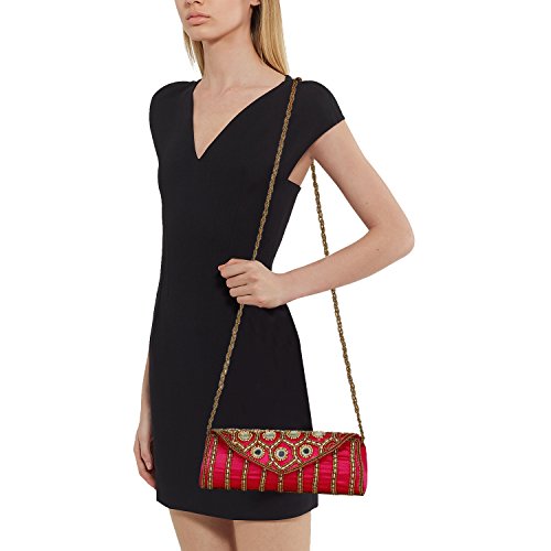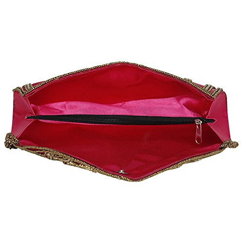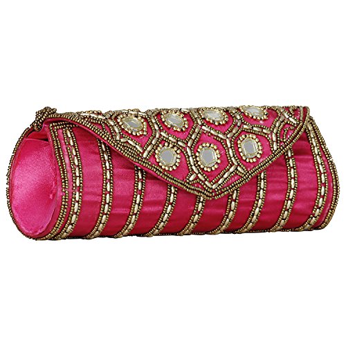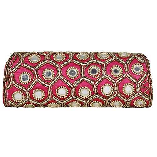 -. Title : Women Sizzling Jaipuriya Style Hand-Cum-Wedding Clutch - Dark Cerise