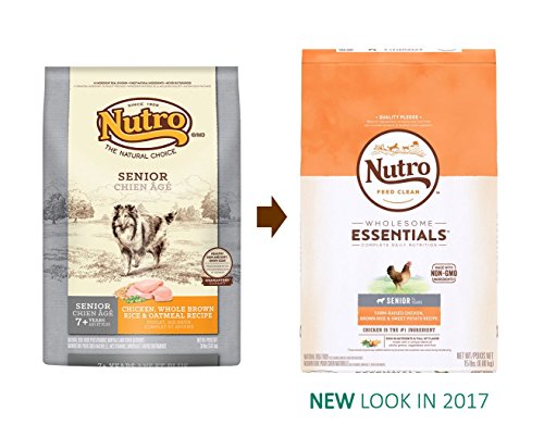 NUTRO WHOLESOME ESSENTIALS Senior Farm-Raised Chicken, Brown Rice & Sweet Potato Recipe Dog Food always starts with great tasting, farm-raised chicken and is made a unique blend of whole grains, vegetables and fruit. This recipe is crafted to help maintain your senior dog's cognitive health and has essential antioxidants to support your dog's aging immune system. This natural dog food also contains Omega 3 & 6 fatty acids to promote healthy skin and a soft shiny coat, plus vitamins, minerals and other nutrients. NUTRO Food for Dogs always follows the THE NUTRO FEED CLEAN philosophy, is always made with Non-GMO* Ingredients and contains no artificial flavors, colors or preservatives. *Trace amounts of genetically modified material may be present due to potential cross contact during manufacturing.