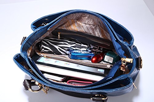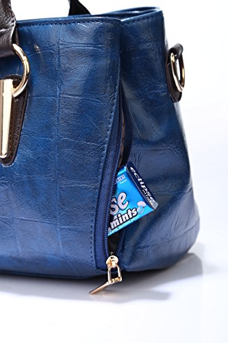 -. Feature : Approximate Size: 13"(L) x 9.4"(H)x 6.3"(W). Please accept 1"-1.5" error. / Made with high quality faux leather (Oil Wax Leather), hardware selected from the best supplier, light and wear, and the lining is a high quality waterproof Terylene. / Structure:Three top zipper compartments,the middle main compartment has zipper pockets and slot.Back zipper pocket,1 Slot Pouch,1 Inner zipper Pocket,2 side zipper pockets. / Come with adjustable and removable long shoulder strap. Can be used as top handle handbag, cross body bag or shoulder satchel. / Features: 3 compartments zipper design, made of crocodile P.R.Int synthetic leather with golden metal tassel tag for decoration.