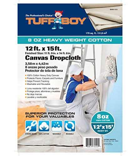 Tuff Boy Cotton Canvas Drop Cloth, Seamless, 12 x 15 Feet, 8 oz
