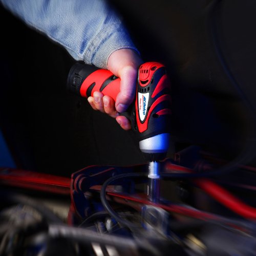 - Feature : ARD847 1/4" drill driver with compact size, 5 torque settings+drill mode, 1/4" hex bit holder, auto spindle lock function / ARL836 flashlight. bare light: no battery. With high performance Cree 1-watt LED that performs 8500 Lux brightness at 3 ft. distance / ARI810T 3/8" Impact Wrench Bare Tool. 113 ft-lbs reverse torque, 75 ft-lbs tightening torque, Variable speed with reversible control, Built-in LED / ARD849 1/4" drill driver. 111 in-lbs max torque, 5 torque settings + drill mode, 1/4" keyless chuck, auto spindle lock / 2 x Li-ion 8V Battery Packs, 1 x 8V Charger and Canvas Bag