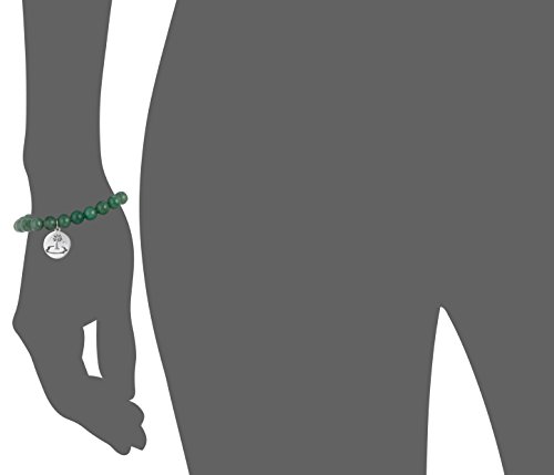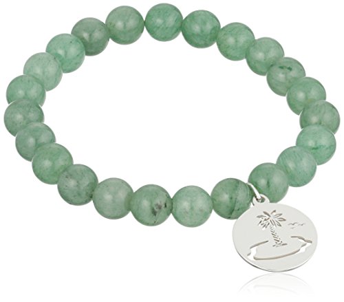 Sterling Silver Palm Tree Charm 8mm Green Aventurine Stretch Bracelet 7.5"