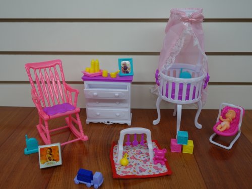 Barbie Size Dollhouse Furniture- Gloria Baby Home Nursery Set
