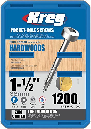 Kreg SPS-F150-1200 1-1/2" Fine Thread Number 7 Pan Head Zinc Coated Pocket Hole Screws (1200 Count)