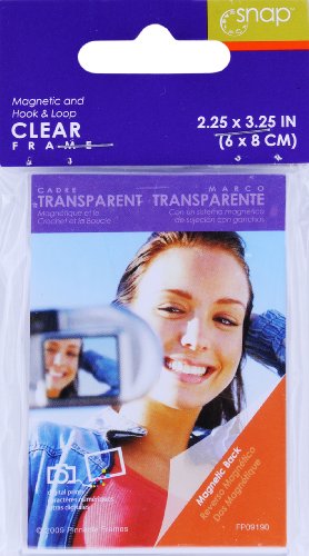 Clear magnetic frame holds a 2-1/4 by 3-1/4-inch photo. Use the magnetic back to display on your fridge or the hook and loop to display another way. Perfect for any metal surface.Feature