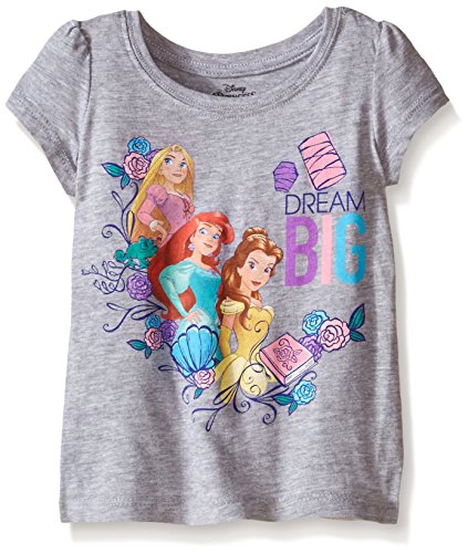 Disney Girls' Princess "princess Dream Big" Short Sleeve T-Shirt, Heather Grey, 3T