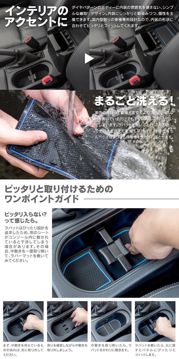 車内の騒音、汚れ、キズを防ぐラバー素材のインテリアマットです。