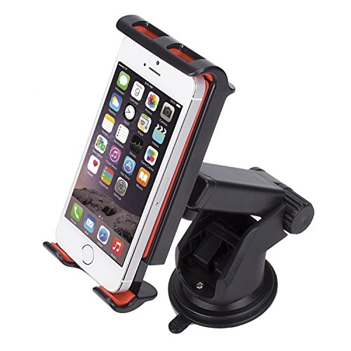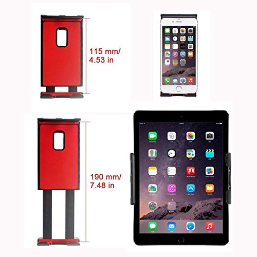 ULTRA-LARGE COMPATIBILITY AND CONVENIENCE: We built unique phone holder to give you complete pleasure & convenience to listen music, watch videos and GPS navigation for the entire journey. You can adjust the clamp length (4.5-7.5inch) to fit all kinds of devices including IPHONE cell phones, SAMSUNG GALAXY, HUAWEI mobile phones, mini pads and etc