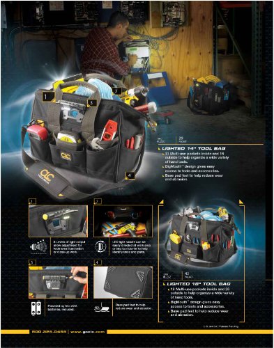 CLC Custom Leathercraft L230 14-Inch 29 Pocket Tech Gear Lighted Big Mouth Tool Bag