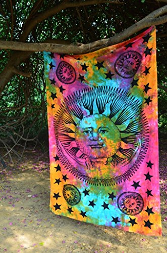 [Description] This product created by Amazon Seller ``Montreal Tapassier`` The size is 220 c.ms x 140 c.ms . Tye dye pink and multi colors used 100% export quality and 100% cotton . We don``t compromise in quality of fabric . Sometimes people offer for 99 cents for twin size tapestry . Remember for 99 cents you cannot even get good quality ear bud . So just think before buying Cold wash only to maintain colors