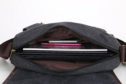 -. Brand : Snowhale -. Department : unisex-adult -. Feature : Material:high density canvas and genuine leather / Dimensions:12.6x11.4x4.3 inches;Weight:24.7oz / Fits Ipad and small laptop,lightweight and durable / Concise design and vintage style,Hold all the daily necessities / Convenient for shopping, traveling, hiking and school -. ProductGroup : Apparel -. ProductTypeName : LAGE -. Title : Casual Messenger Crossbody Bag Shoulder Bag Sw1078