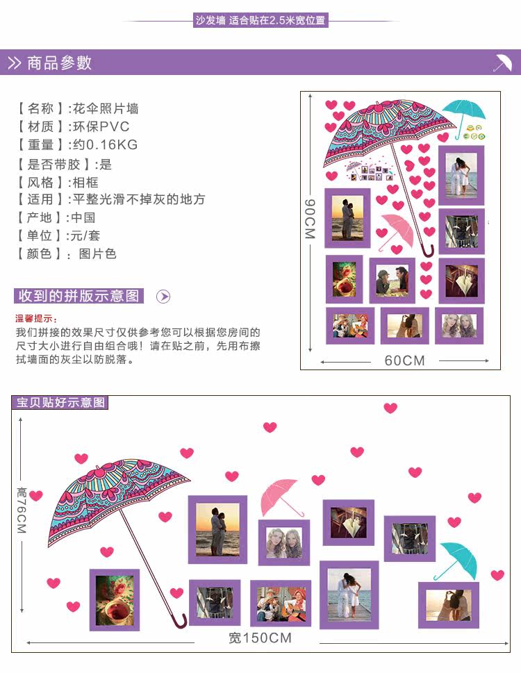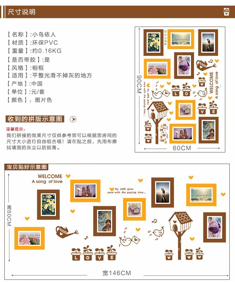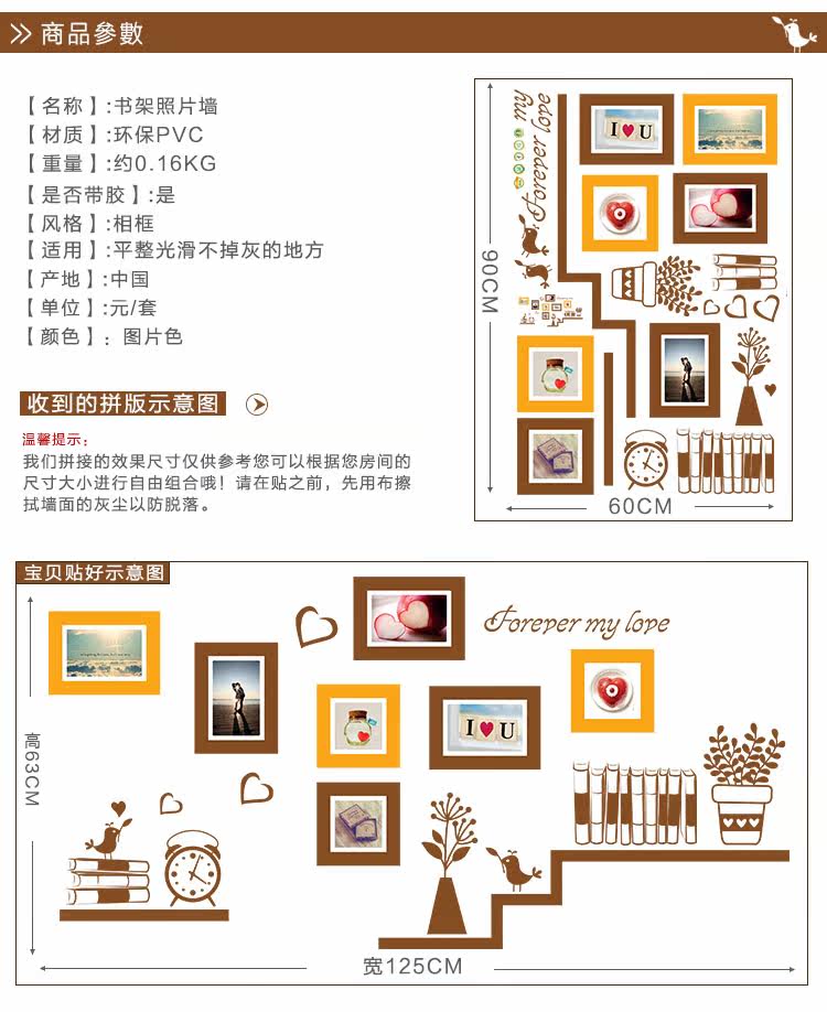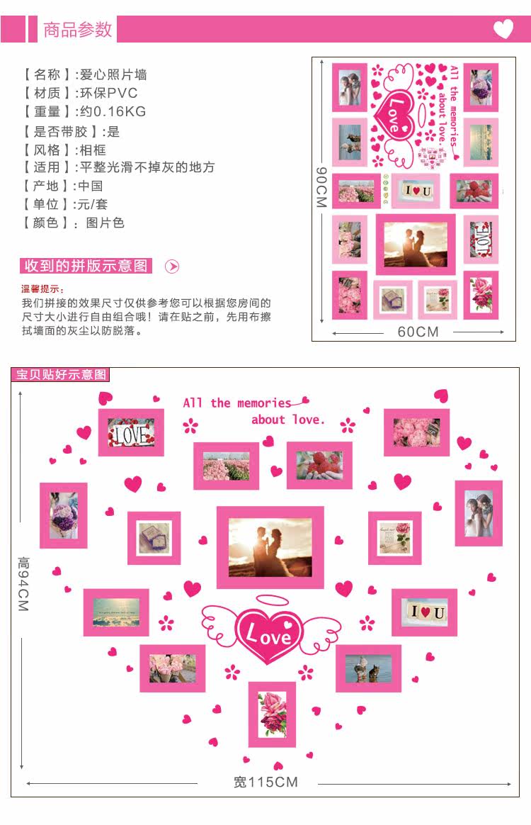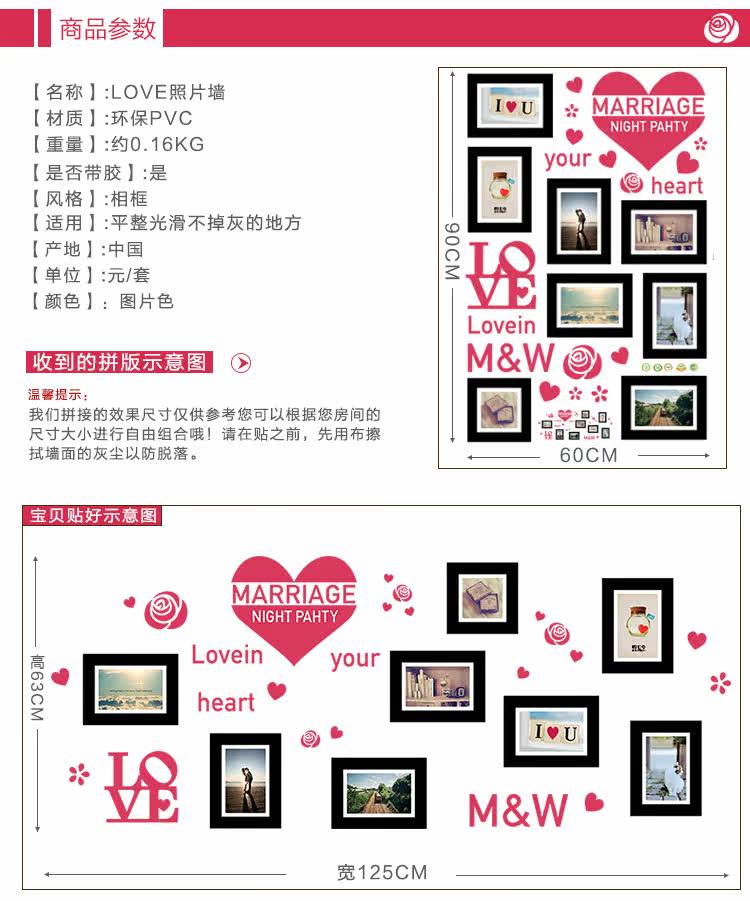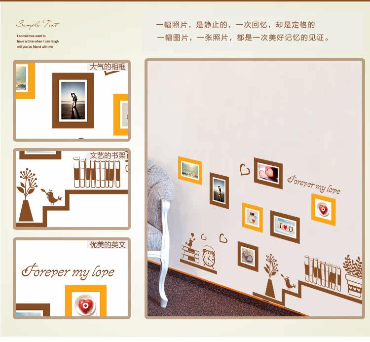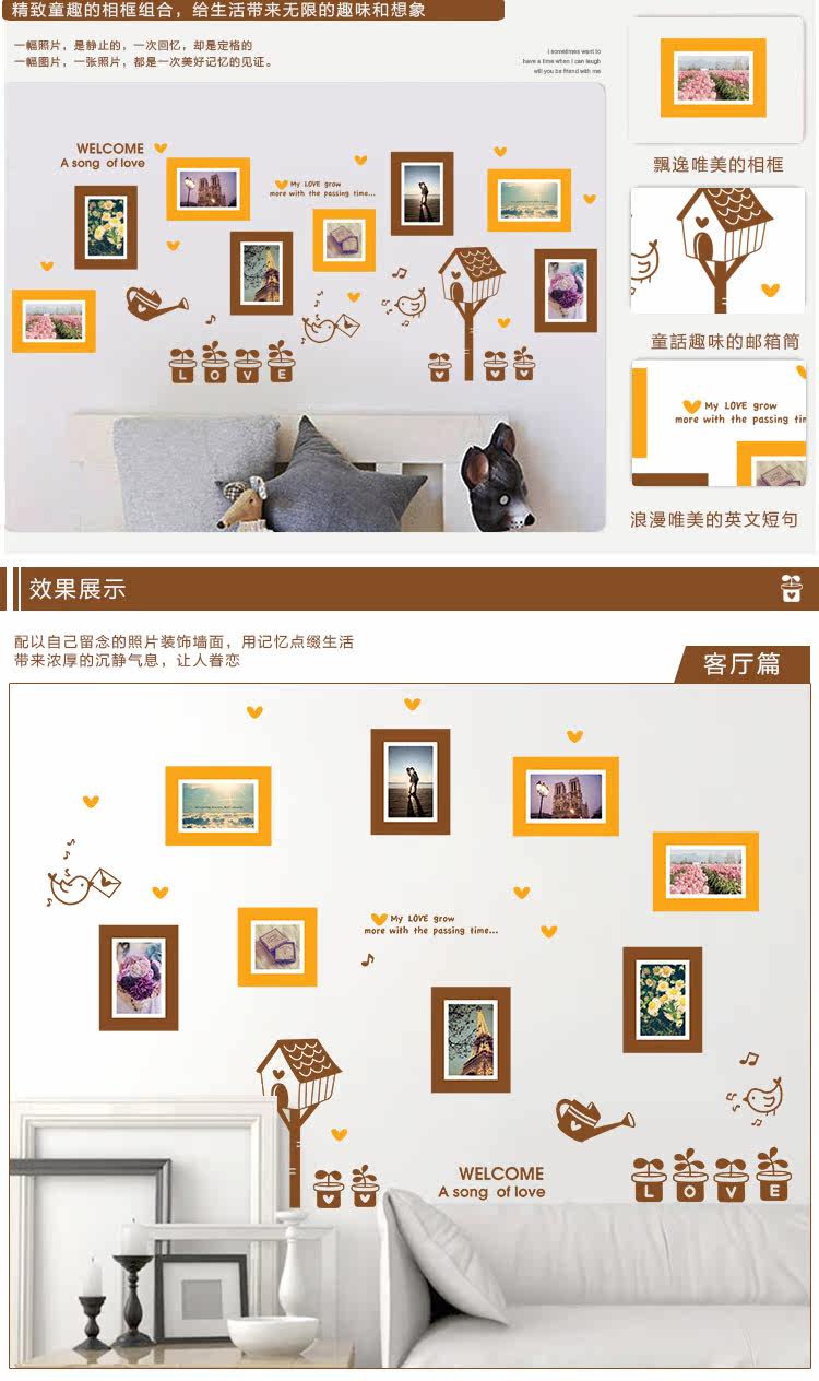 墙贴浪漫温馨照片墙相片贴客厅卧室背景墙装饰贴纸宿舍布置可移除
