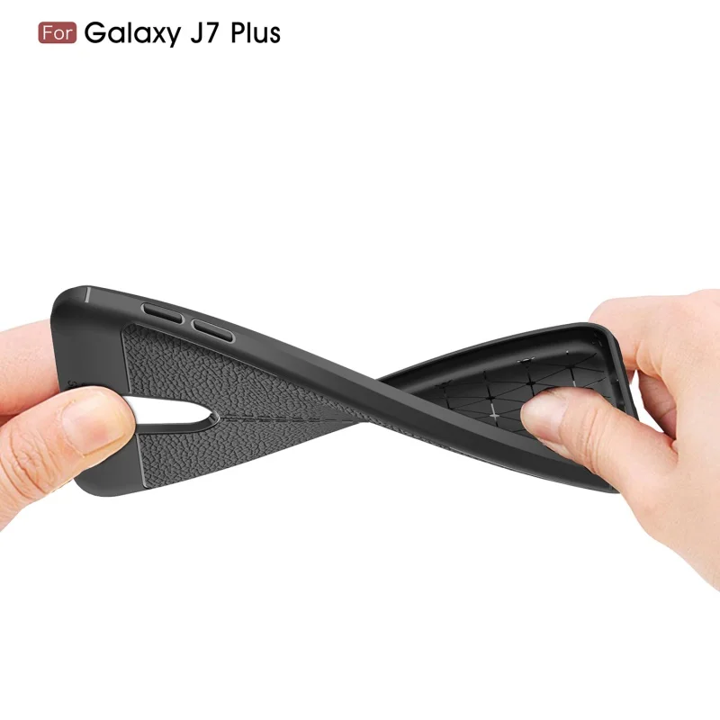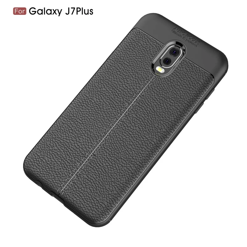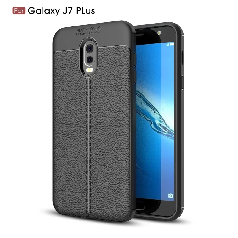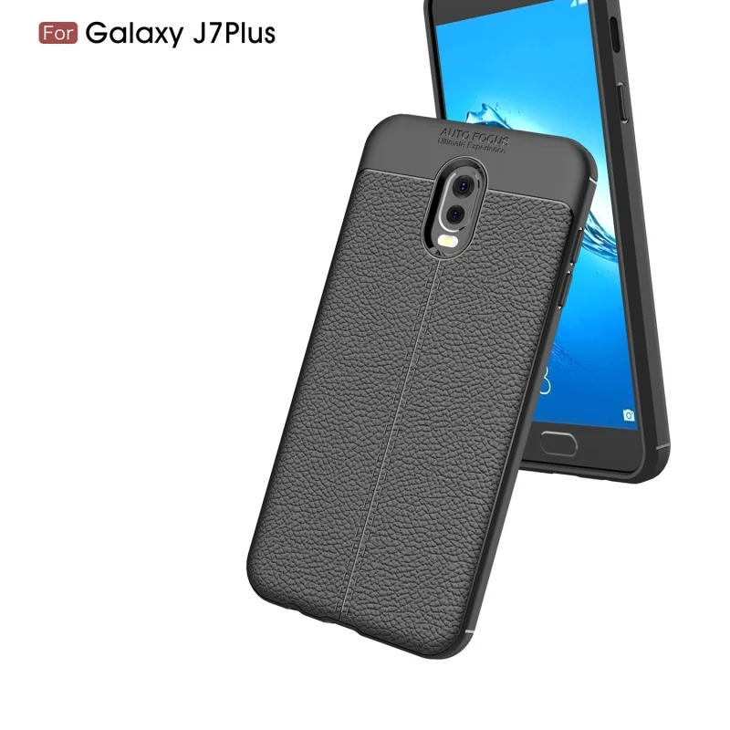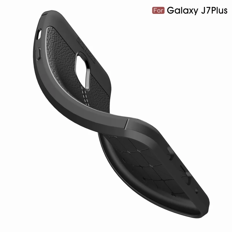 Litchi Grain Soft TPU Back Cover for Samsung Galaxy J7+ / C8 - Black
