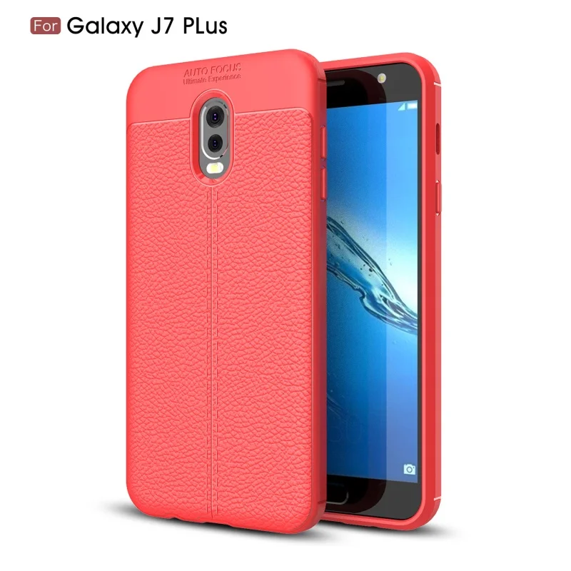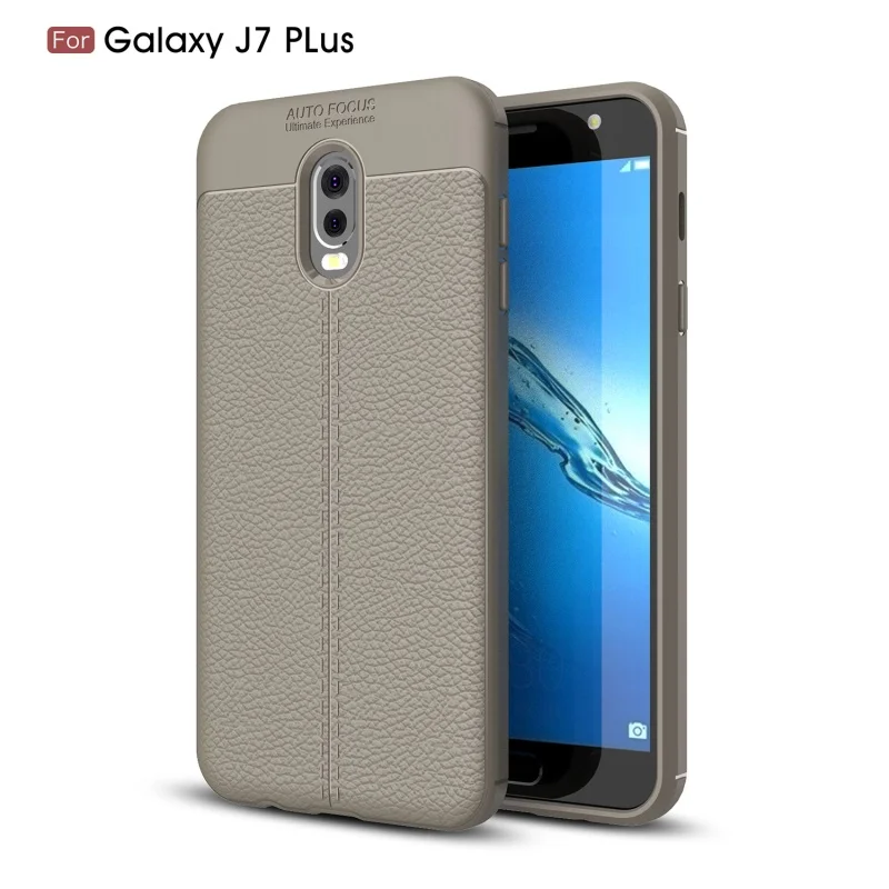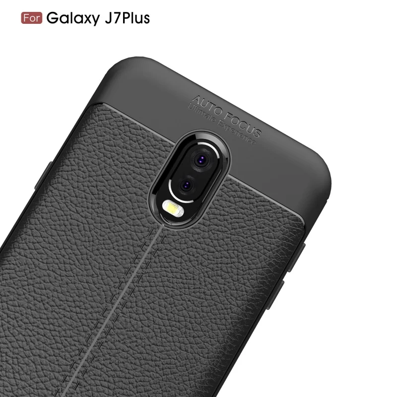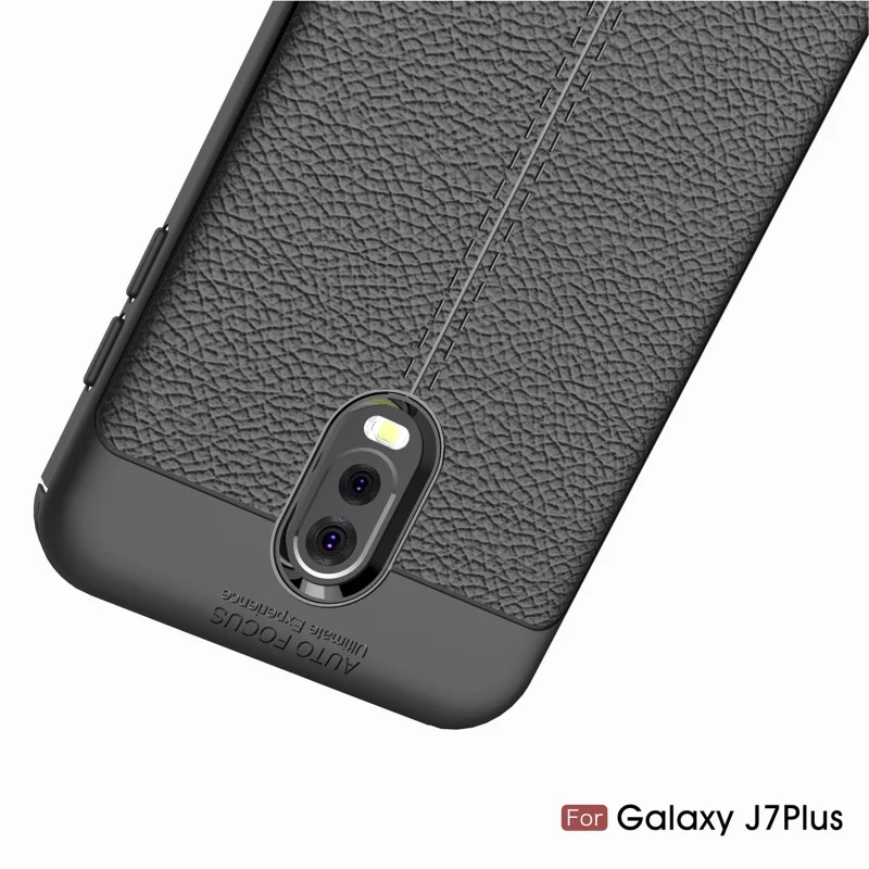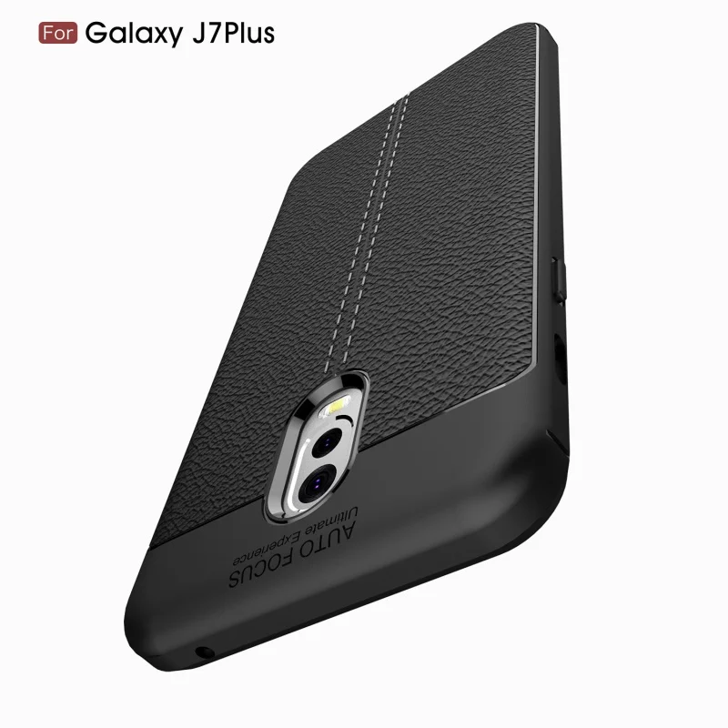 Litchi Grain Soft TPU Back Cover for Samsung Galaxy J7+ / C8 - Black