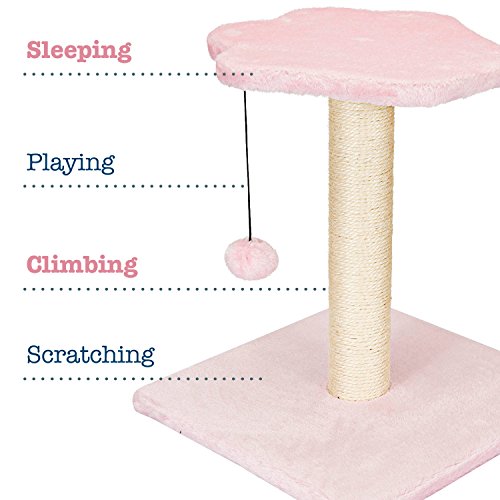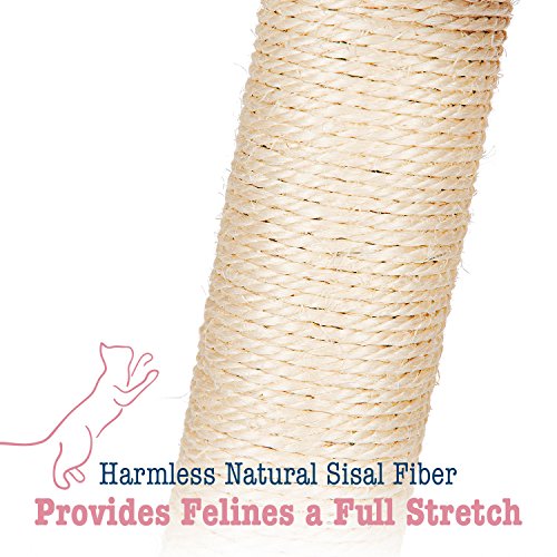 Your Cat's Best Scratching Toy and Instinct Reliever This cat scratching posts is the perfect feline tool for two of their basic needs: scratch and play. Not only it has a nice and safe plush platform for them to stand on, but one plushy ball that makes it a real playtime and scratching paradise. It has a lookout post for elevated lounging that provides endless opportunities for cats to play, explore, or just relax. It's the perfect feline product with which they can sharpen their claws on the scratching post instead of on your things, giving them a healthy outlet for their scratching instincts. The post is covered in durable sisal that will allow them to get a full stretch, and its height allows them to stretch vertically while using the post, which is important for territorial marking purposes and for muscle toning. Suitable and recommended for cats of all ages and activity levels. 0 |