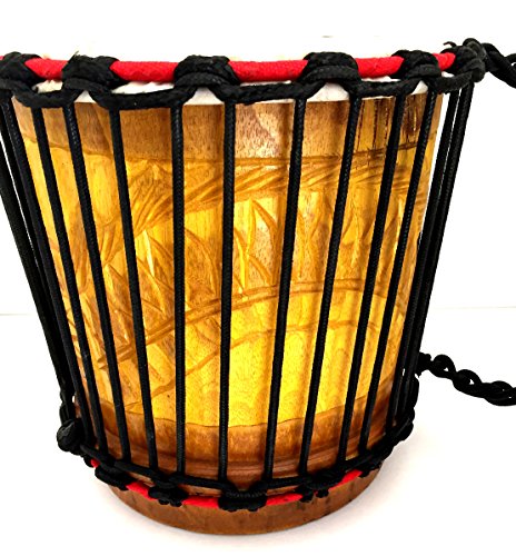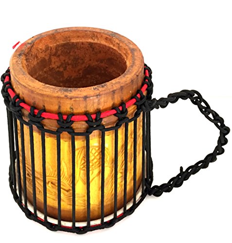 Product Description haped like a djembe drum without the pedestal, this traditional kyinsim is elaborately carved by hand. This design facilitates a balanced sound Traditionally favored by kings, the design of this drum facilitates a balanced sound. 0