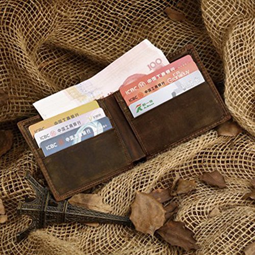 -. Feature : 100% brand new, 100% genuine leather / Material: crazy horse leather. Lining: nylon / Dimensions: 4.53(L) x 3.74(H) inches(11.5cm length x 9.5cm height). Weight: 0.06KG / Structure: 6 card slots,2 bill compartments,2 dark case / Vintage, elegant and luxury, best gift for men