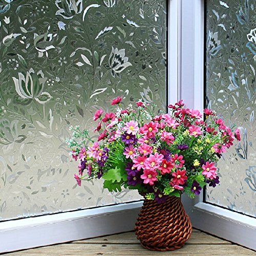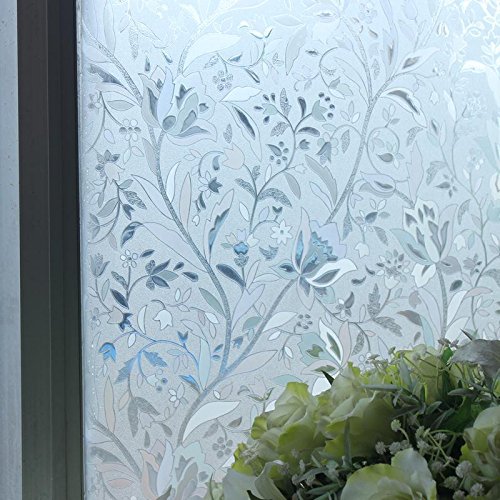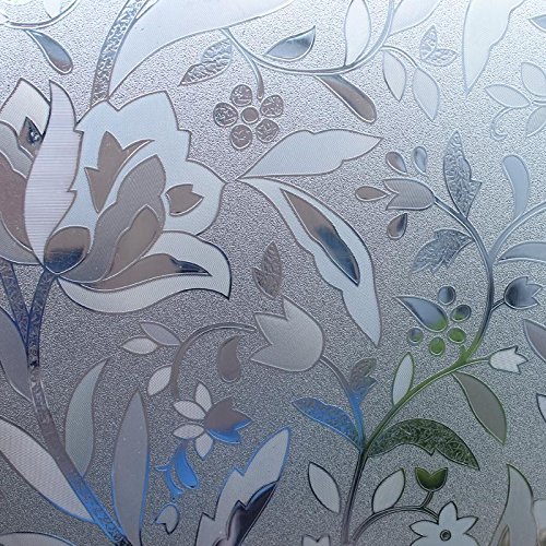 24-by-72-Inch Leyden Cut Glass Tulips Pattern No-Glue 3D Static Decorative Glass Window Films