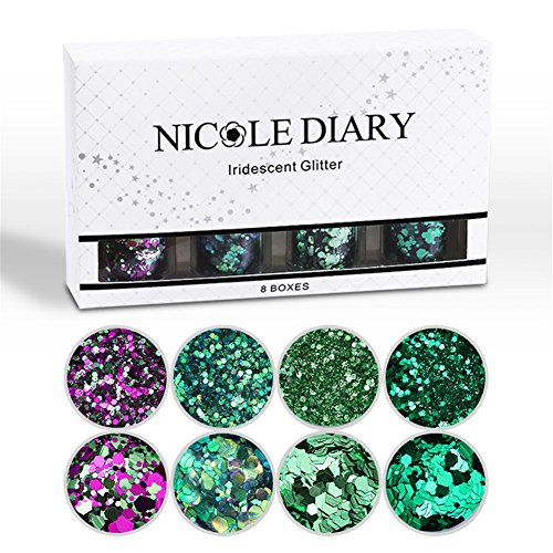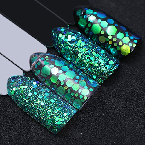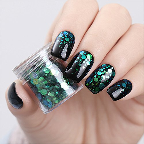-. Title : NICOLE DIARY Nail Sequins Christmas Green Sparkle Hexagon Ultra-thin Grass Green Glitter Powder Nail Paillette Flakies