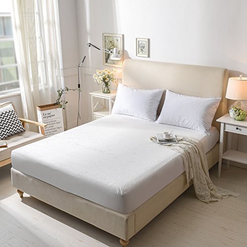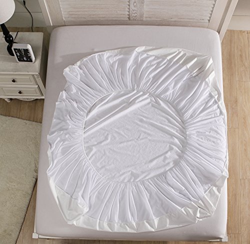 -. Feature : Universal Waterproof Mattress Protector Cover suitable to over 99% home mattress pad size / Material: It's 80% cotton- 20% polyester terry cloth blend surface that provides comfort and absorbancy. / Designed: The Mattress Protector has a special breathing (polyurethane) film on the back, which allows heat and moisture to breathe through while blocking off besmirch, liquid, bacteria and other hypersusceptibility materials from bed mattress. Great for those with kids, pets, allergies, asthma, etc. / Functions: The mattress covers is with antibacterial, water-resistant, dust mite protection, bed bug protection and against allergen. / Easy To Maintain: mattress protector can be machine washable and dried on low heat. We sest quarterly launderings for best results.