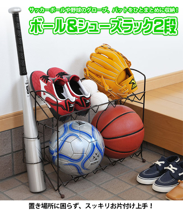 サッカーボールや野球のグローブ、バットをまとめて収納!
