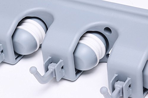 ? CLEVERLY DESIGN - Broom storage stay like magic, you can easily place or remove your items. It also has hooks so you can place dustpans or rags. Mop organizer holder would be fantastic in your garage to hold shovels and rakes as well. You really like having this one in your kitchen closet where you can keep everything out of the way. It is going to make your life easier knowing where you put the broom now.