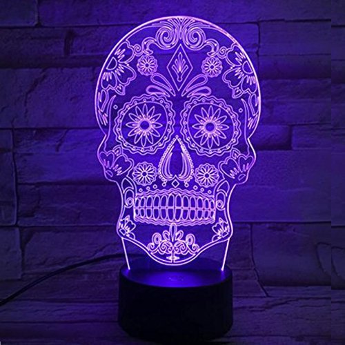 SHENNOSI 3D Skull Lamp Easter Gift Arabesque Multicolor Desk LED USB Button Light 7 Color Change (Skull 2)