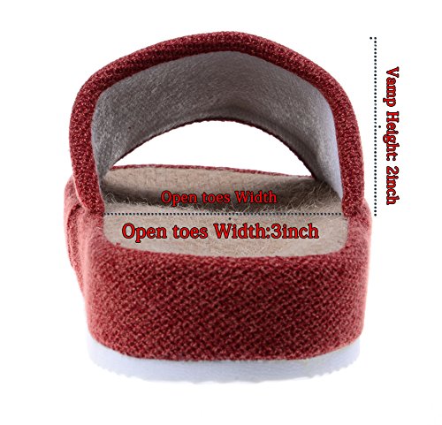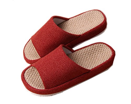 Bronze Times (TM) Unisex Cozy Tatami Indoor Cotton Flax House Slippers (Red),9M US
