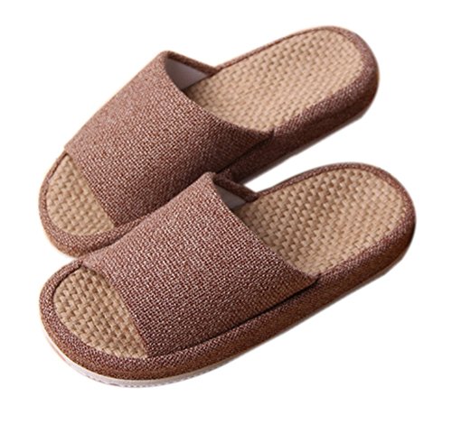Bronze Times (TM) Unisex Cozy Tatami Indoor Cotton Flax House Slippers (Coffee), Large ( For US men 6.5-8/Asian 39-42 )