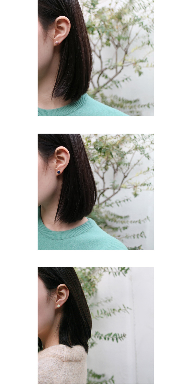 살짝 울퉁불퉁하게 곡선 진 레이아웃의 골드 프레임에 에폭시 기법으로 컬러를 채워 넣은 귀걸이입니다. 총 6컬러로 제작되었으며, 모두 피부 톤과 잘 어우러지고 활용도가 높은 예쁜 색감으로 제작되었습니다. 귀에 딱 붙는 스타일의 작고 심플한 디자인으로 데일리 귀걸이로 좋습니다. 침은 은침으로 제작되었습니다.