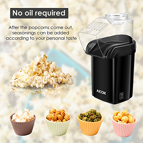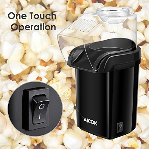 Aicok Popcorn Maker, Popcorn Machine, Hot Air Popcorn Popper No Oil Needed, With Wide Mouth Design and 1200W Power, Includes Measuring Cup and Removable Lid, FDA Approved and BPA-Free