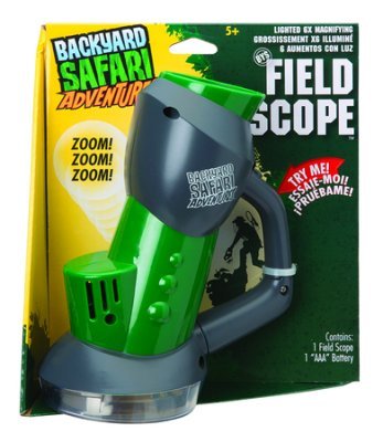 Studio : LearningLAB Publisher : LearningLAB Binding : Office Product Product Description The Backyard Safari Field Scope from Poof Slinky is the right kind of gear to start your outdoor adventures. Designed for ages 5 years and older, this field scope has a sturdy handle grip and built-in LED light, so you can examine your specimen with a minimum of fuss. Features a wide-angle eye pieces and 6x magnification for detailed viewing. Batteries included. Package dimensions: 7" x 8" x 3.75". Backyard Safari Adventures! Be proud of your patches! Many Backyard Safari products come with a pop-up field guide and an exclusive collectible patch. Collect all 12 patches. The field guide is filled with rich illustrations and exciting missions. Once you complete the missions, you are rewarded with a special patch that can be ironed onto your Cargo Vest as proof of your accomplishments. 0