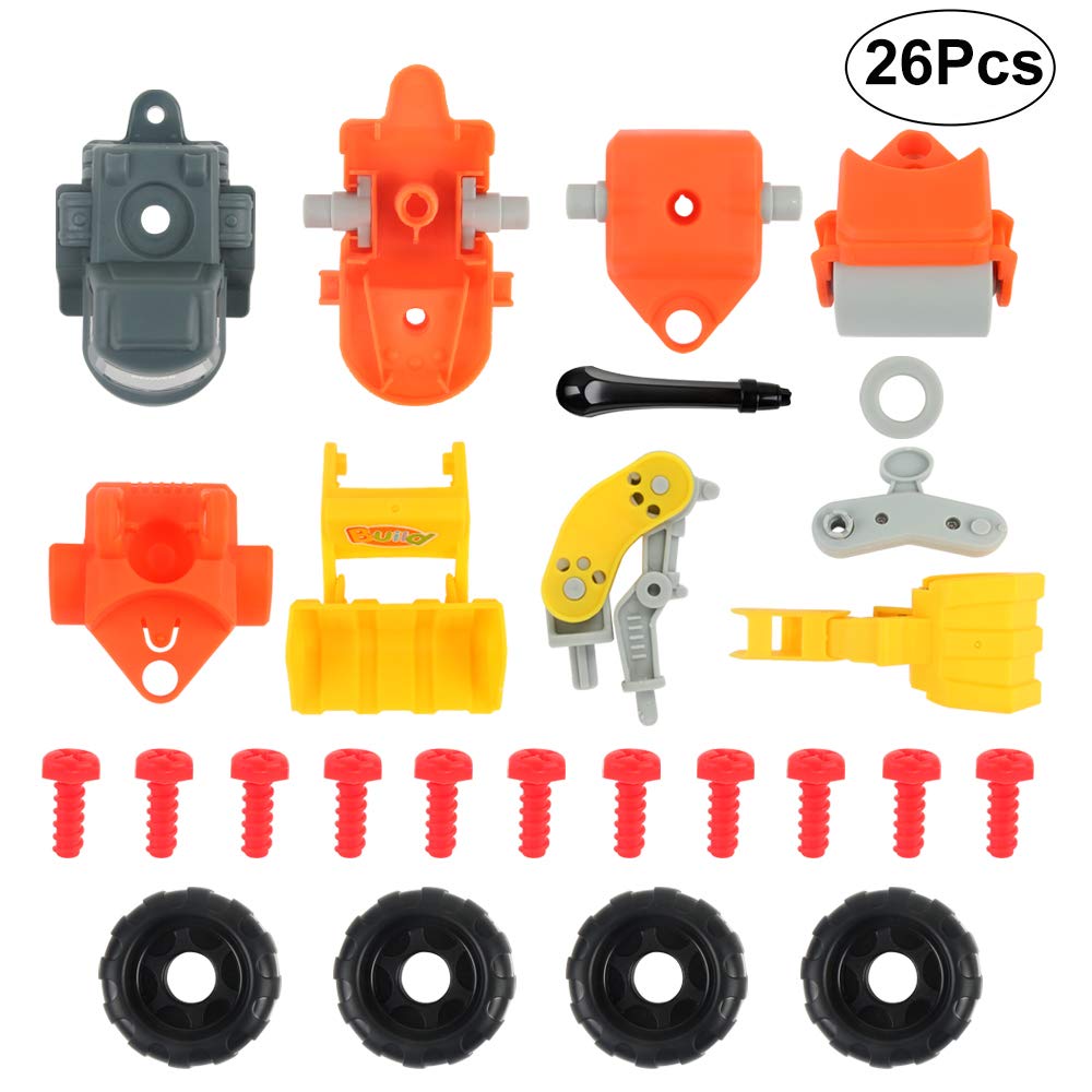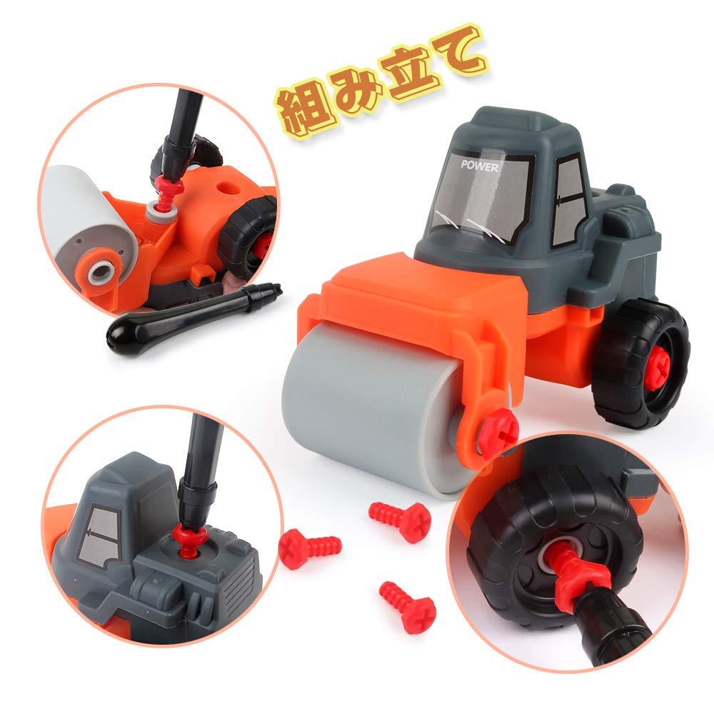 【4 IN 1変形】この組み立て車おもちゃは、ショベルカー、ブルドーザー、ハンマクラッシャー、ロードローラーその4種類の形が作れます。驚きのボリューム感、26ピースがあり、自由に組み替え可能で、思いのままに様々な作業車等のオリジナル作品が作られて、無限な可能性が創造されてきました。
