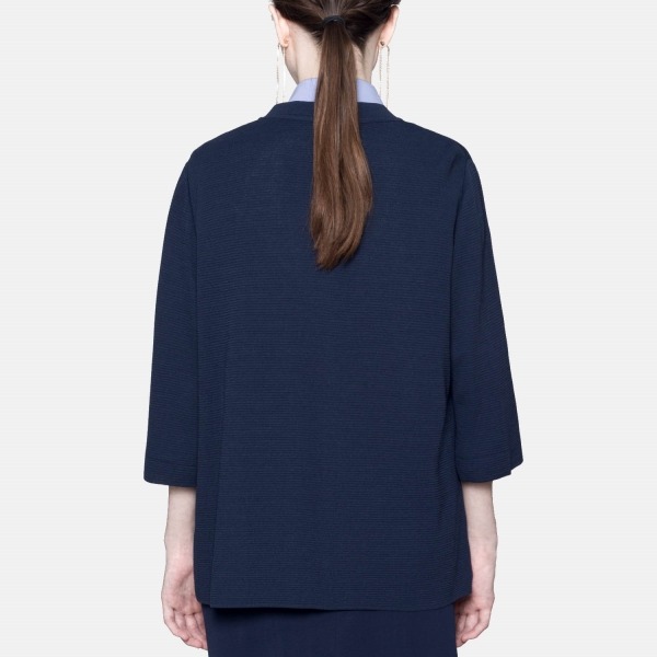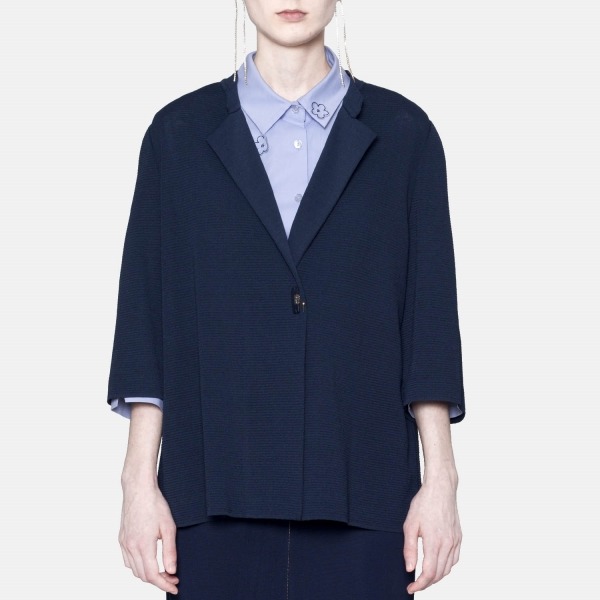 니트 조직감으로 소재의 굴곡을 주어 스트라이프 질감이 느껴지는 자켓입니다. 간절기에 가볍게 걸쳐 연출하기 좋으며, 스냅 버튼으로 오픈/클로징이 가능합니다.