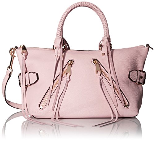 -. Binding : Apparel -. Brand : Rebecca Minkoff -. Department : womens -. Feature : Leather satchel featuring twin top handles with whipstitched weaving and adjustable side straps with buckles / Zippers with long leather pulls / Detachable, adjustable cross-body strap -. Label : Rebecca Minkoff -. Manufacturer : Rebecca Minkoff -. Model : Moto Satchel -. ProductGroup : Apparel -. ProductTypeName : HANDBAG -. Publisher : Rebecca Minkoff -. Studio : Rebecca Minkoff -. Title : Rebecca Minkoff Moto Satchel Shoulder Bag A Rebecca Minkoff satchel styled in pebbled leather. 2 zips accent the front, and buckles cinch the side gussets. The top zip opens to a lined, 4-pocket interior. Rolled handles and optional, adjustable shoulder strap.